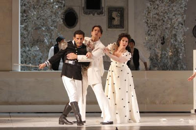 El Barbero de Sevilla ópera bufa en dos actos de Gioacchino Rossini. Elenco: Nathan Gunn (Figaro), Joyce Di Donato (Rosina), Juan Diego Flórez (Conde Almaviva), Bruno Praticò (Dr. Bartolo), Andrea Silvestrelli (Don Basilio), José Adán Pérez (Fiorello), Kerry Marcinko (Berta). Producción del Teatro Real de Madrid de Emilio Sagi. Iluminación: Eduardo Bravo. Coreografías: Nuria Castrejón. Escenografías: Llorenç Corbella. Dirección escénica: Javier Ulacía. Orquesta y coro de la Opera de Los Angeles. Director Musical: Michelle Mariotti. Función del 6 de diciembre de 2009. Dorothy Chandler Pavilion, Los Ángeles, California.